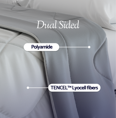 Crafted with a double-sided design. One side made from ThermaCool Cooling Fabric that’s instantly cool to the touch, and the other from luxurious TENCEL™ Lyocell for breathable, silky comfort. The perfect balance of instant cooling and all-night softness.